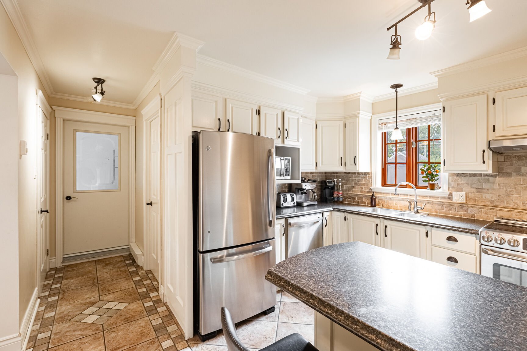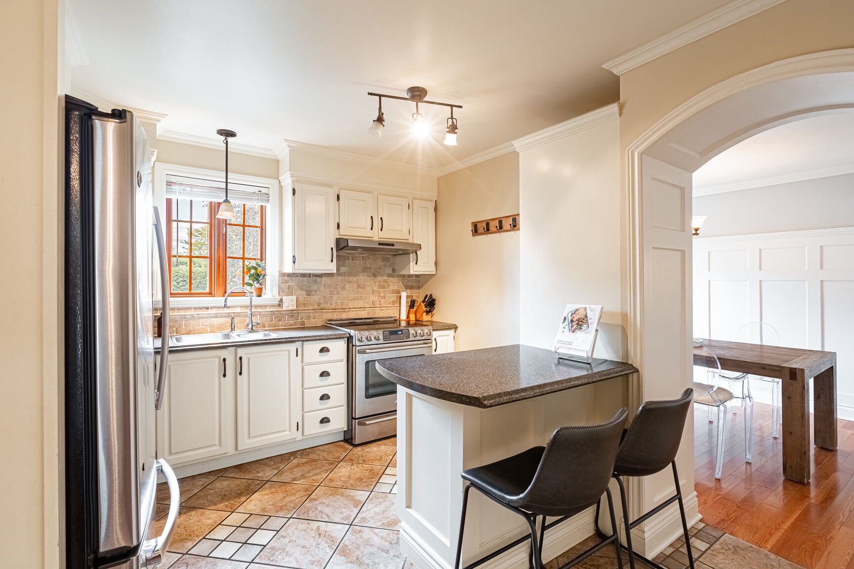 * Cuisine fonctionnelle et bien équipée, avec armoires de