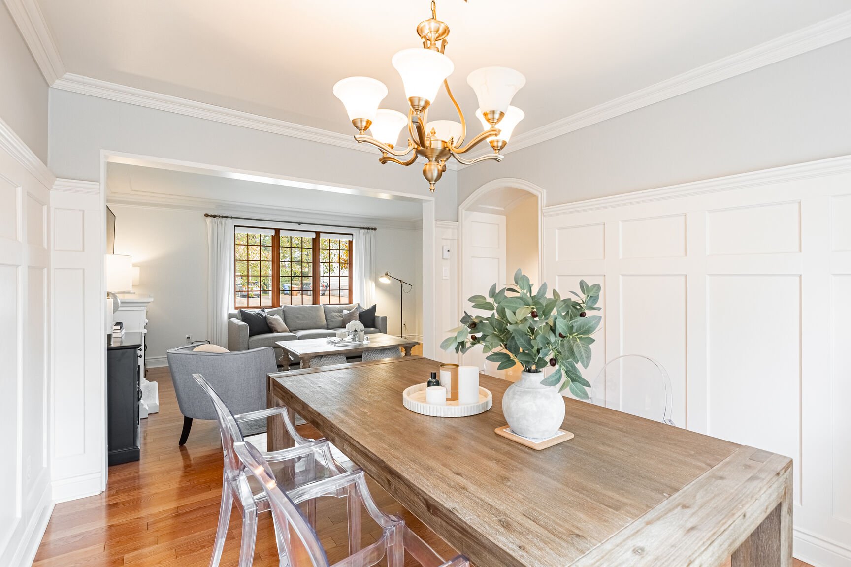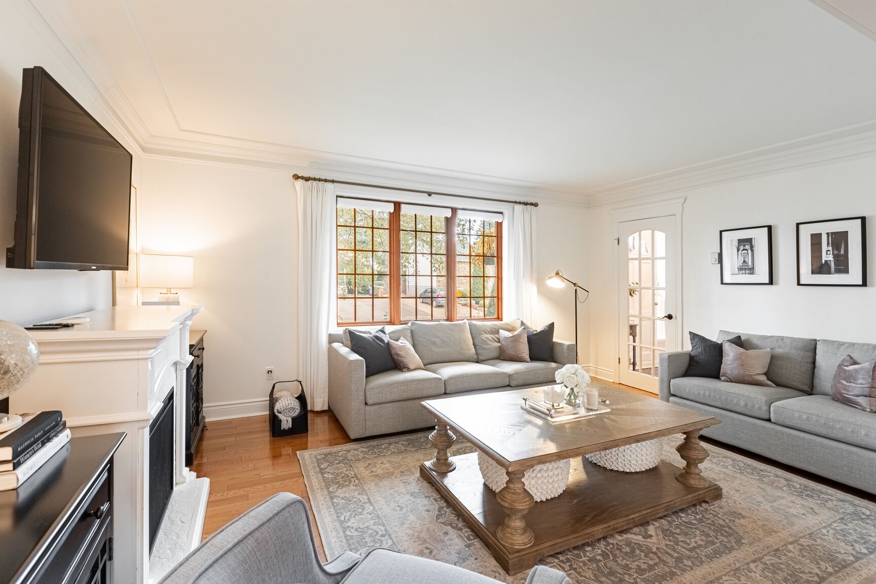 * Salon spacieux avec fenestration abondante, muni de