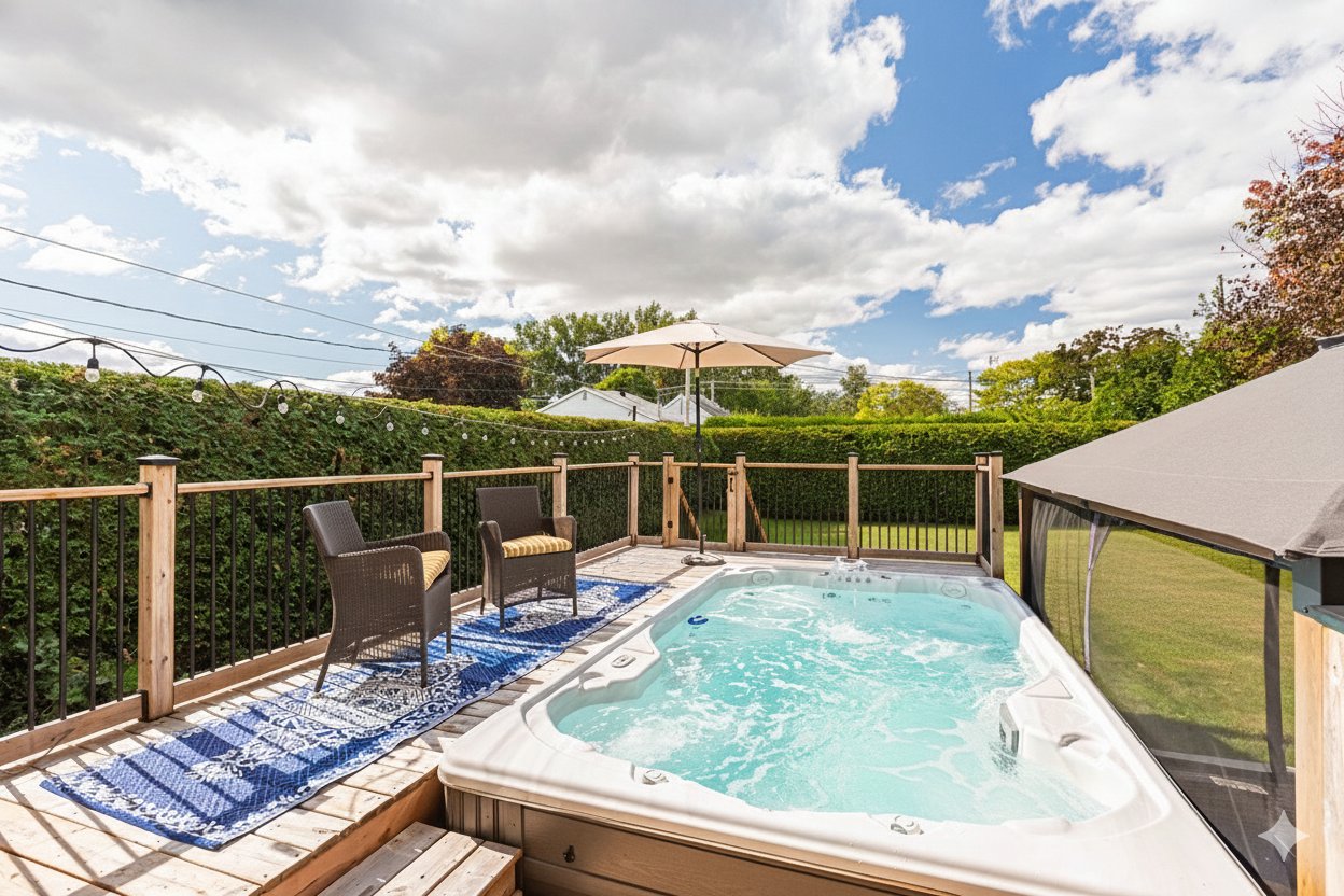 * Grande cour arrière avec cabanon, gazebo et spa de nage